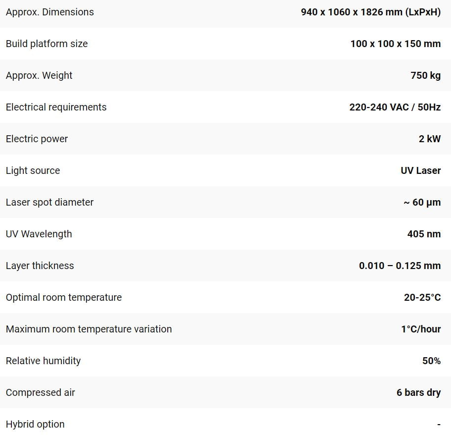 • A pressure tank (1,5 liter) feeding to provide the material quantity required for an optimized run 100*100*150